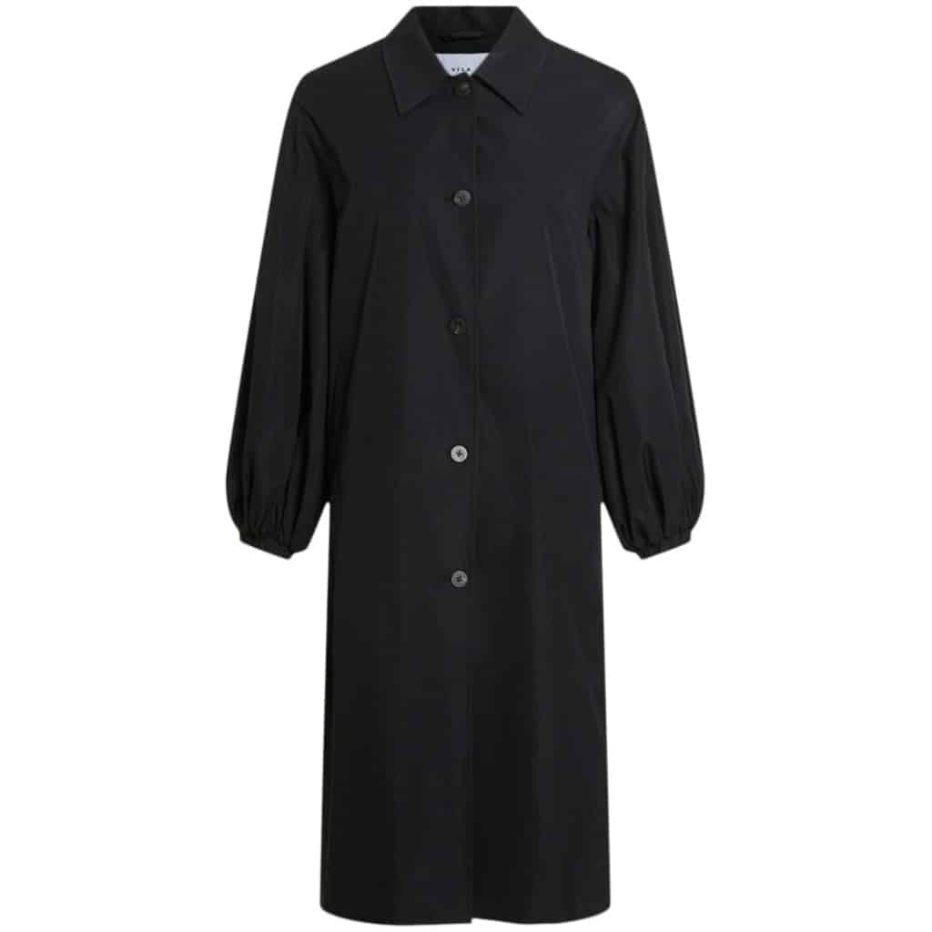 Smukkeste trenchcoat fra Vila med krave og knapper langs fronten. Jakken har de skønneste ballonærmer som skiller sig ud fra den klassiske trenchcoat man kender. Kan styles med hvad som helst i klædeskabet, og kan bruges både til hverdag og finere brug.-